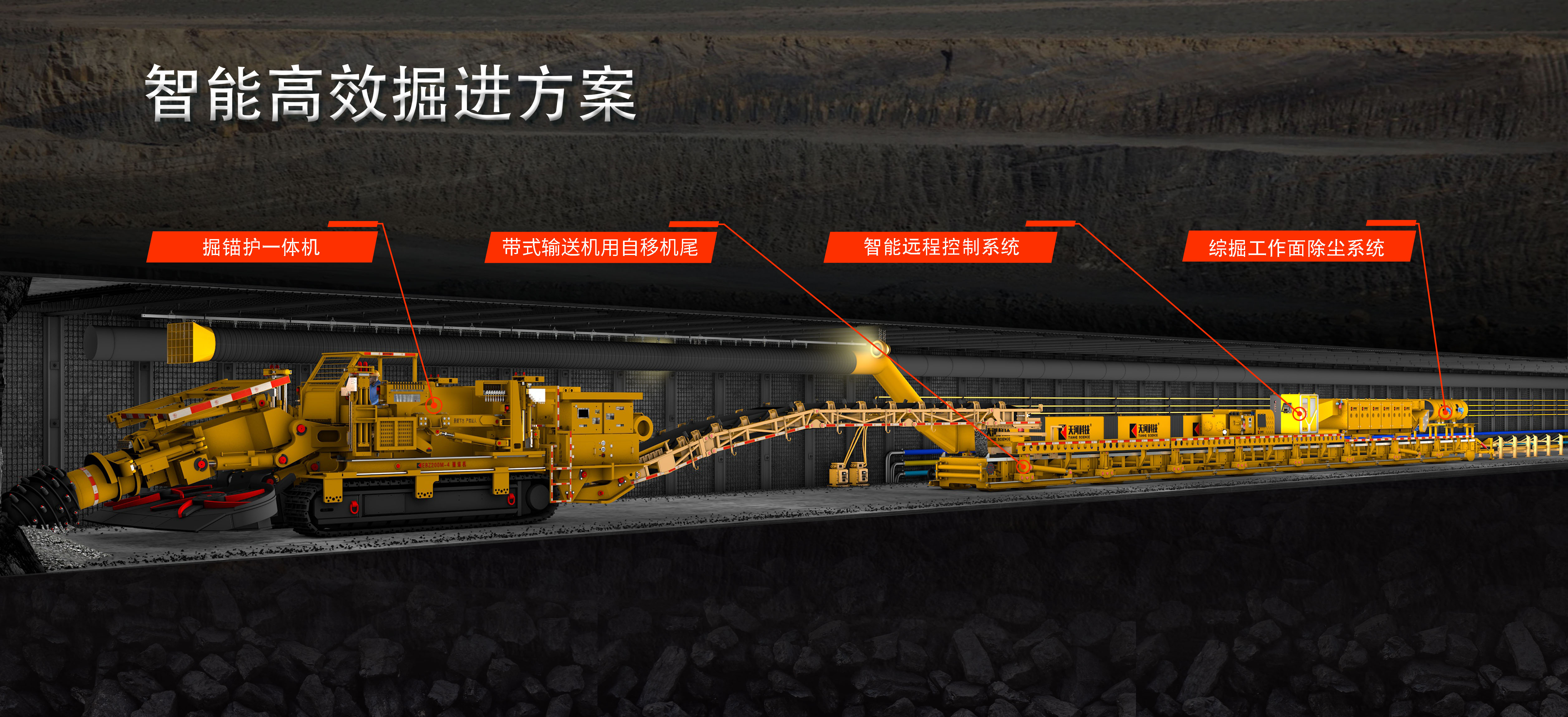 ABOUT US山東天河科技股份有限公司成立于2003年,是一家致力于煤礦巷道掘進(jìn)等領(lǐng)域智能裝備研發(fā)、生產(chǎn)和銷(xiāo)售的高新技術(shù)企業(yè)。公司坐落于孟子故里山東省鄒城市,現(xiàn)有員工450余人,產(chǎn)品包括智能高效掘進(jìn)、混凝土施工、粉塵治理、沖擊地壓防治、煤礦機(jī)器人以及電氣控制六大系列。 公司擁有山東省企業(yè)技術(shù)中心、煤礦智能掘進(jìn)裝備山東省工程研究中心等多個(gè)省市級(jí)創(chuàng)新研發(fā)平臺(tái),與高等院校、科研院所及煤礦企業(yè)長(zhǎng)期開(kāi)展技術(shù)合作,是煤礦智能化創(chuàng)新聯(lián)盟、礦山機(jī)器人創(chuàng)新應(yīng)用聯(lián)盟等成員單位。承擔(dān)了多項(xiàng)國(guó)家級(jí)、省級(jí)科研項(xiàng)目,獲得江蘇省科技進(jìn)步一等獎(jiǎng)1項(xiàng)。擁有各項(xiàng)專(zhuān)利120余項(xiàng),其中發(fā)明專(zhuān)利25項(xiàng)。自主研發(fā)的掘錨護(hù)一體機(jī)、全機(jī)械化遠(yuǎn)距離噴漿成套設(shè)備等,經(jīng)鑒定技術(shù)水平達(dá)到國(guó)際領(lǐng)先或國(guó)際先進(jìn),有8項(xiàng)產(chǎn)品被認(rèn)定為山東省首臺(tái)(套)技術(shù)裝備,3項(xiàng)產(chǎn)品列入煤礦安全先進(jìn)適用技術(shù)裝備推廣目錄,入選工信部首批先進(jìn)適用技術(shù)1項(xiàng),全國(guó)礦山領(lǐng)域典型應(yīng)用優(yōu)秀場(chǎng)景4項(xiàng)。 通過(guò)了ISO9001等管理體系認(rèn)證,榮獲國(guó)家專(zhuān)精特新重點(diǎn)“小巨人”企業(yè)、國(guó)家高新技術(shù)企業(yè)、國(guó)家知識(shí)產(chǎn)權(quán)示范企業(yè)、國(guó)家綠色工廠(chǎng)、山東省瞪羚企業(yè)、山東省技術(shù)創(chuàng)新示范企業(yè)、全國(guó)煤機(jī)行業(yè)創(chuàng)新型企業(yè)、全國(guó)煤炭行業(yè)用戶(hù)滿(mǎn)意供應(yīng)商等稱(chēng)號(hào),產(chǎn)品銷(xiāo)往國(guó)家能源集團(tuán)、中煤集團(tuán)、山東能源集團(tuán)、陜煤集團(tuán)、晉能控股集團(tuán)等各大企業(yè),并為徐工集團(tuán)、三一重裝、中國(guó)中鐵等多家大型企業(yè)提供設(shè)備配套。 公司始終堅(jiān)持“創(chuàng)新成就夢(mèng)想,科技引領(lǐng)未來(lái)”的經(jīng)營(yíng)理念,為用戶(hù)解決個(gè)性化裝備需求是天河人永遠(yuǎn)的追求!